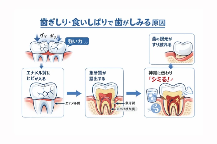 歯ぎしり・食いしばりで歯がしみる?