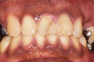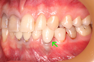 | 主訴 | 前から数えて2番目の歯と歯の間の隙間がきになる。 できればあんまり歯を削りたくない。 以前に虫歯でプラスティックをつめており、 残っている歯も少ないからという患者からの要望があった。 |