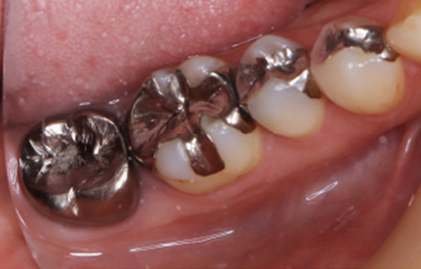 写真は、「メタル(銀歯)インレー」と呼ばれ、金属で部分的に治す方法となります。いずれにしても歯の部分的な治療で、詰め物をする方法を「インレー」と呼びます。