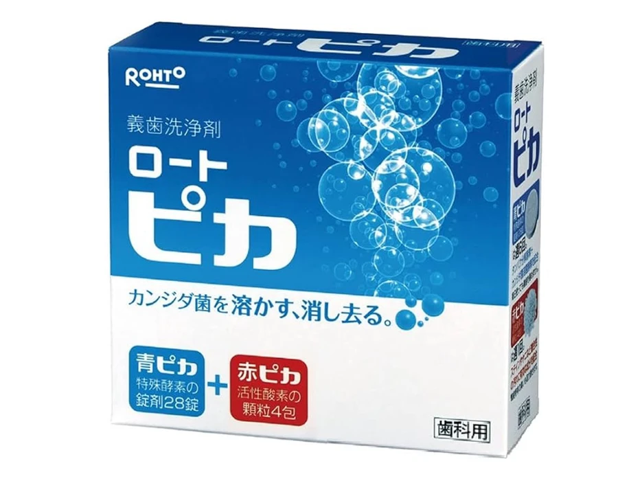 こちらの商品は、青と赤の錠剤が入っています。青ピカ(酵素系)は、酵素の力を利用して食べかすや消臭効果があります。普段は、青ピカを使用して下さい。赤ピカ(アルカリ系(次亜塩素酸系)は、1週間に1度タバコのヤニやお茶やコーヒーなどの着色を活性酸素が落としてくれます。