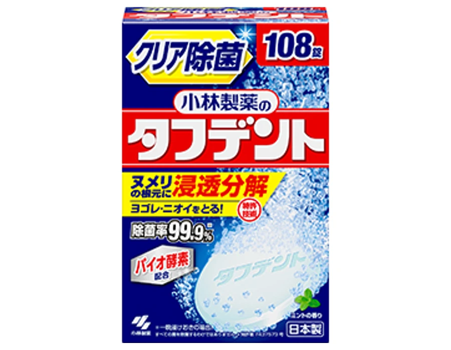 除菌活性化成分(TAED)を配合しています。ヌメリ・ネバつきの原因菌を除菌し、しっかり除菌するには、一晩浸けて下さい。部分入れ歯にも使えます。