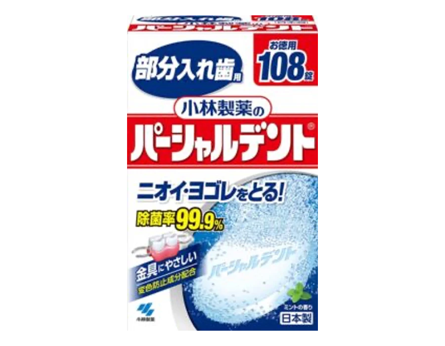 部分入れ歯用洗浄剤になります。部分入れ歯は、金具がありますので、金属が錆びないように防錆剤が含まれているのが特徴になります。