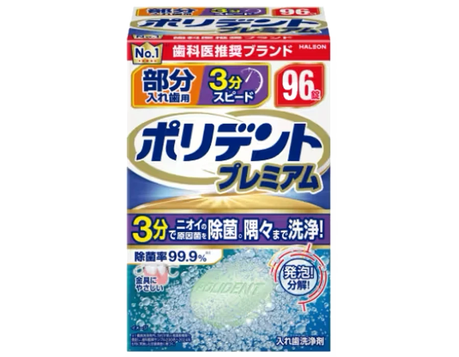 いわゆるスタンダードな入れ歯洗浄剤になります。どのメーカーも除菌率は高いですね。