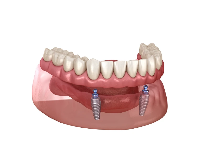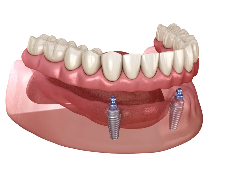 インプラント入れ歯とは、少ない本数のインプラントを使って入れ歯を固定する治療法です。