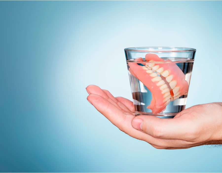 入れ歯は簡単に外して洗うことができ、夜間は入れ歯洗浄剤に浸けてお手入れできます。そのため、介護の場面でも清掃がしやすいという利点があります。